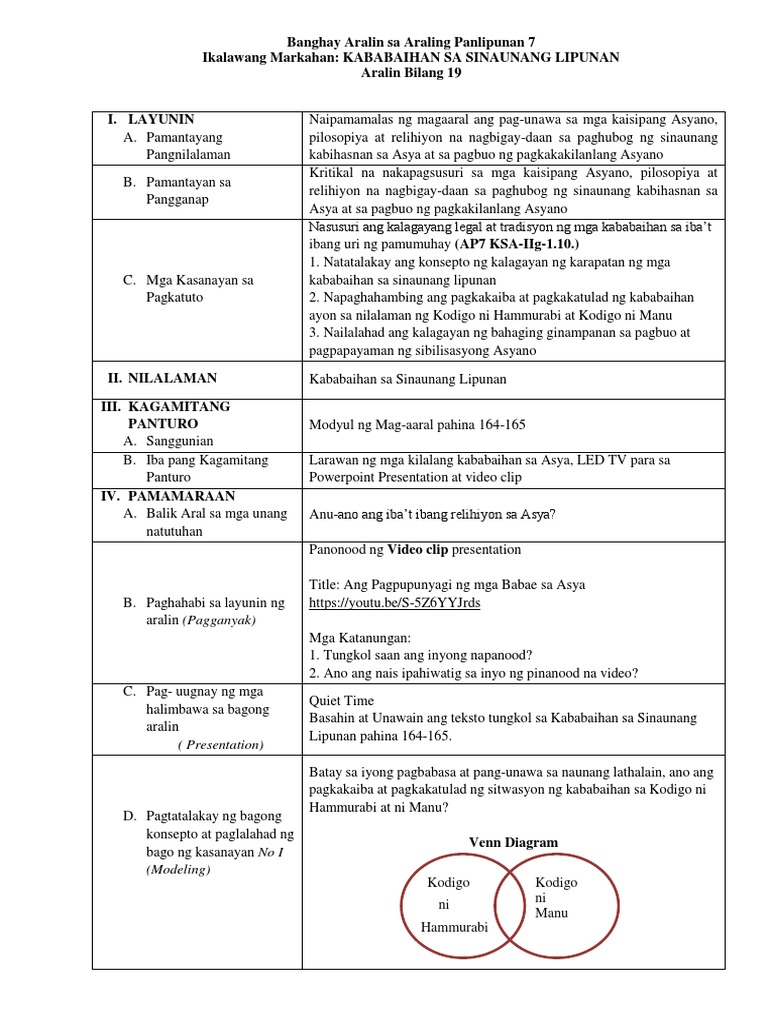Ikalawang Markahan Aralin Bilang 19 Kababaihan Sa Sinaunang Lipunan Pdf